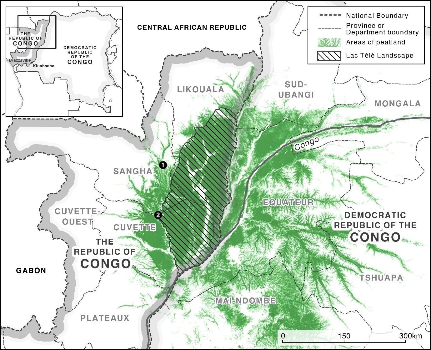 The world’s largest tropical peatland complex is in the central Congo Basin (Dargie et al. 2017). It covers 5.5 million hectares of north-eastern Republic of Congo and 11.3 million hectares in western Democratic Republic of the Congo (Crezee et al., 2022). It is of great importance locally to those that utilise the peatlands; it is of national importance in terms of the provision of clean water; it is of regional importance, cooling the region and generating the rainfall that agriculture relies on; and it is of global importance as a large store of carbon in the peat, some 29 billion tonnes, equivalent to three years of global fossil-fuel emissions and as home to lowland gorillas, forest elephants, and other precious biodiversity (Dargie, 2015; Crezee et al., 2022; Sonwa et al., 2022).